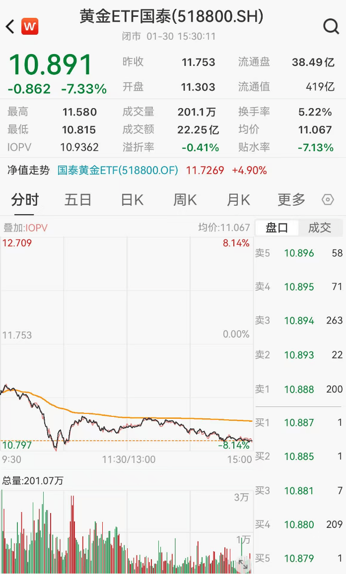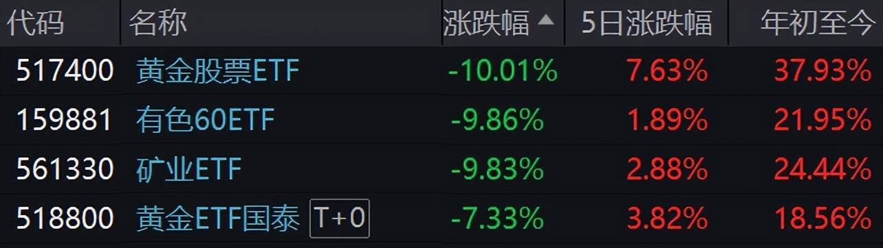 黄金股票ETF(517400)、有色60ETF(159881)、矿业ETF(561330)、黄金ETF国泰(518800)大跌点评