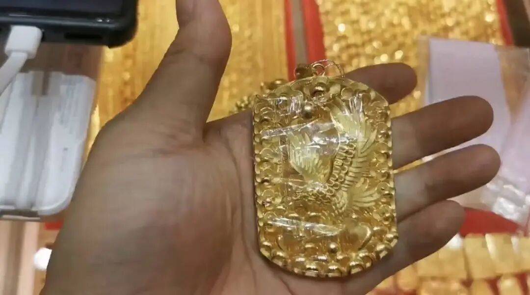 记者发现,张先生在社交平台的个人账号中,有许多他戴着金牌在外面游玩的视频。2024年4月30日,他还发视频记录了当时购买这块金牌的过程。视频显示,当时他在黄金柜台看中了一块图案是大鹏展翅的金牌,当即就付款买下。发票显示,他买的这块足金999金牌吊坠重80余克,花费5万多元,当时单价为678元/克。
