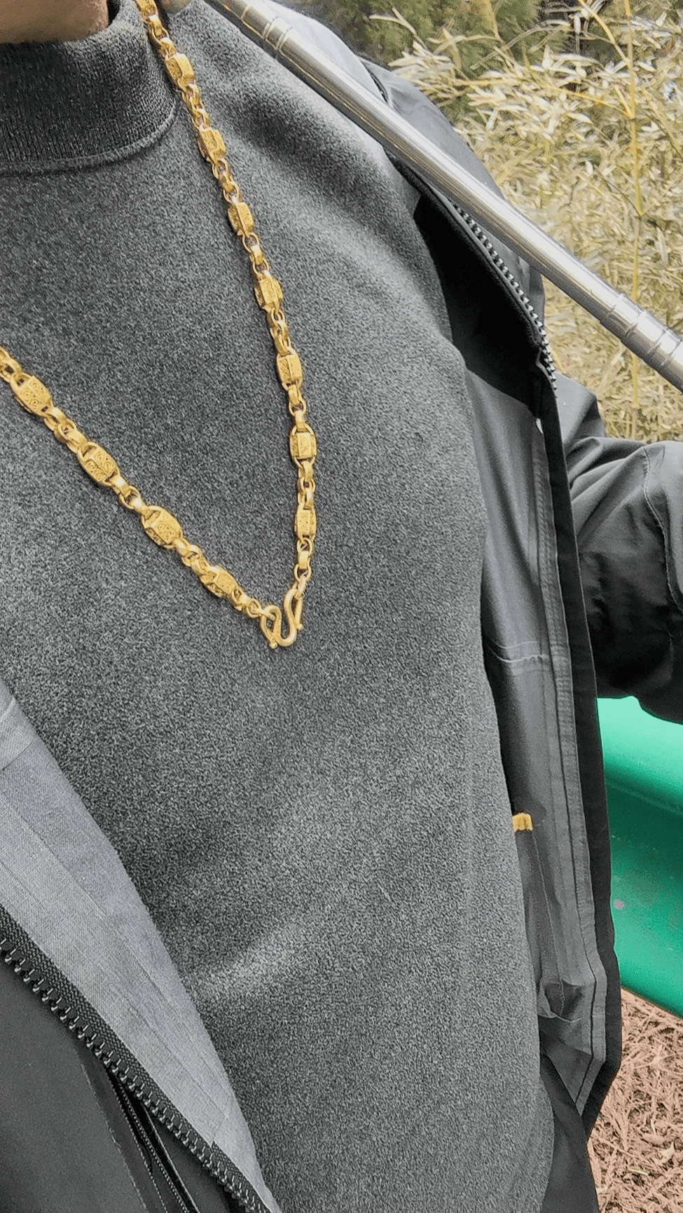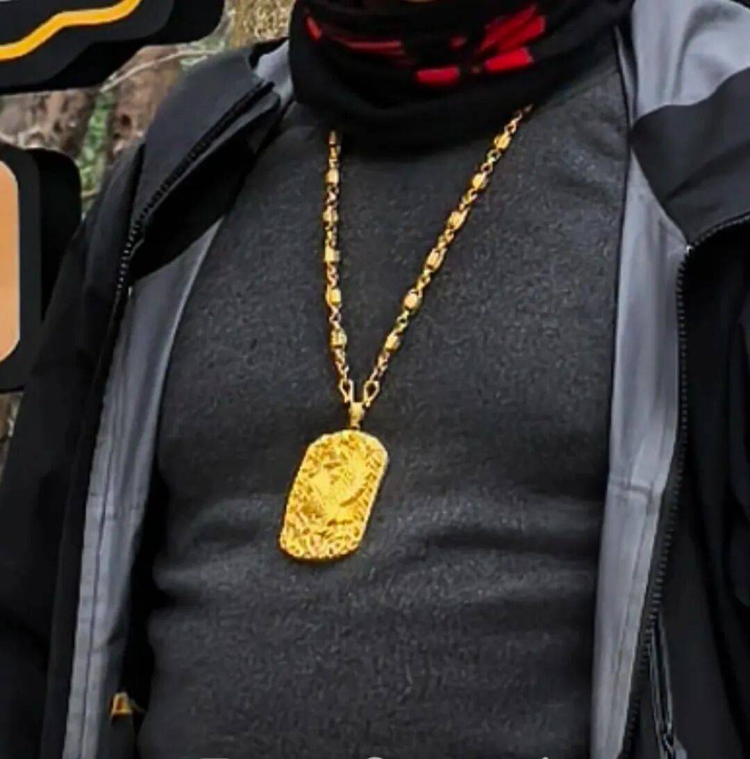 25日,张先生告诉记者,他24日11点多从梵音古道上山途中,发现脖子上挂着的金牌不见了,只剩下一条挂金牌的链子,他四处寻找都不见踪影,只得报警求助。这块金牌重80余克,发票都还在,平时他都一直戴着,出去游玩时也会随身戴在脖子上。