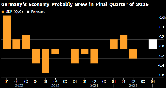 德国将成为市场关注的核心 —— 该国将率先发布七国集团中首个 2025 年全年经济增长预估数据。这份定于下周四公布的报告,将揭示欧洲最大经济体在四季度的表现,彼时德国经济可能已出现复苏苗头。