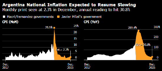 阿根廷将于下周二公布 12 月消费者物价指数报告,市场预计月度与年度通胀涨幅或小幅回落。