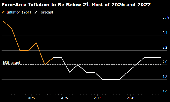2026 至 2027 年大部分时间欧元区通胀率料低于 2%