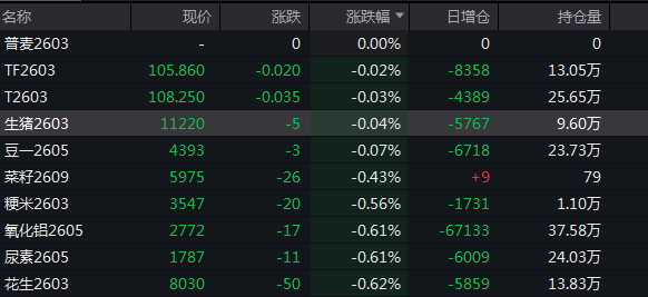 比如大豆、菜籽期货的主力合约,今日跌幅均不超过0.5%,基本不受外部市场影响的生猪期货2603合约全天跌幅仅为0.04%。