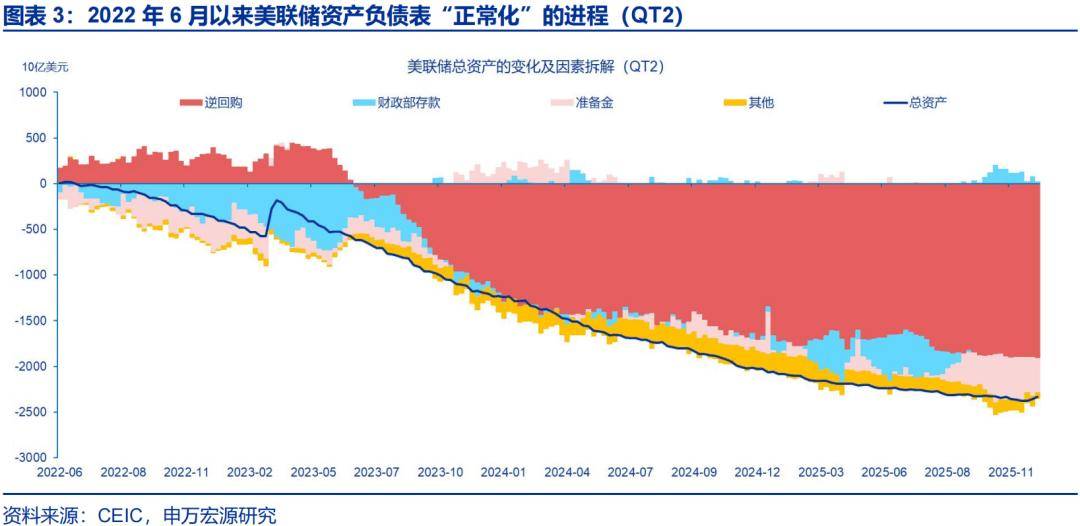 1)美联储2025年12月FOMC例会宣布重启RMP,扩表进入“新常态”。这是准备金供给变为充足之后、预防年底及2026年4月缴税日之前准备金需求扰动的必要举措,与美联储货币政策立场无关——并非货币宽松举措。