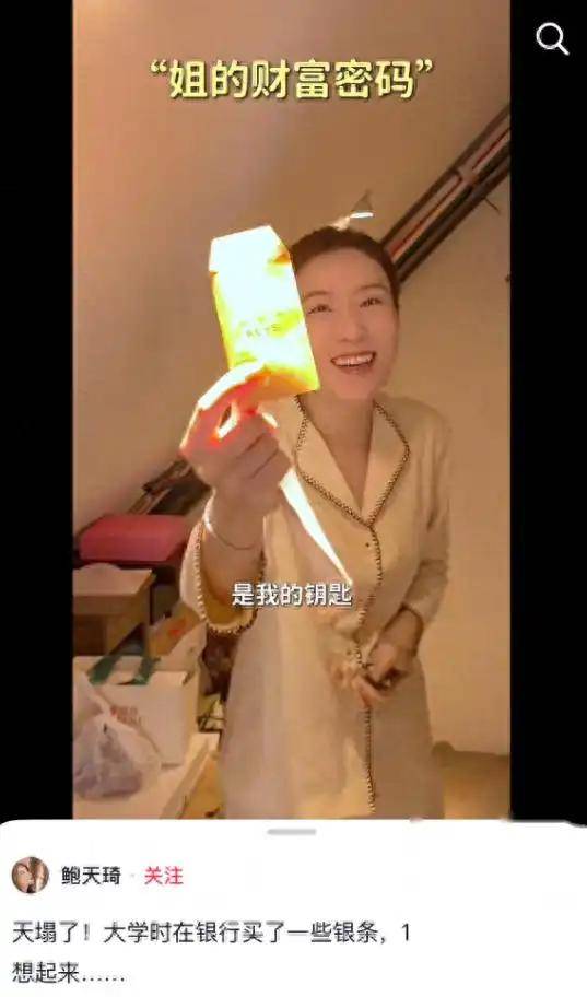 近日,鲍天琦的一则动态引起了大家的关注,她在社交平台上晒出了一张自己与银行工作人员的合影,并配文称自己找到了存放白银的保险箱钥匙,准备去银行提取这笔逾期存放的白银。