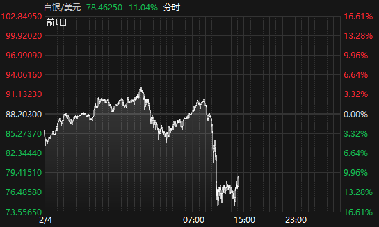 据Choice数据,2月5日,国际现货黄金、白银午后跌幅收窄,截至14:11现货黄金报4912.22美元/盎司,日内跌1.05%;现货白银报78.46美元/盎司,日内跌11.04%。