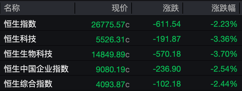 2月2日,港股低开低走,恒生科技指数午后跌幅扩大至4%;恒指现跌近3%。截至收盘,香港恒生指数收跌2.23%,恒生科技指数跌3.36%。