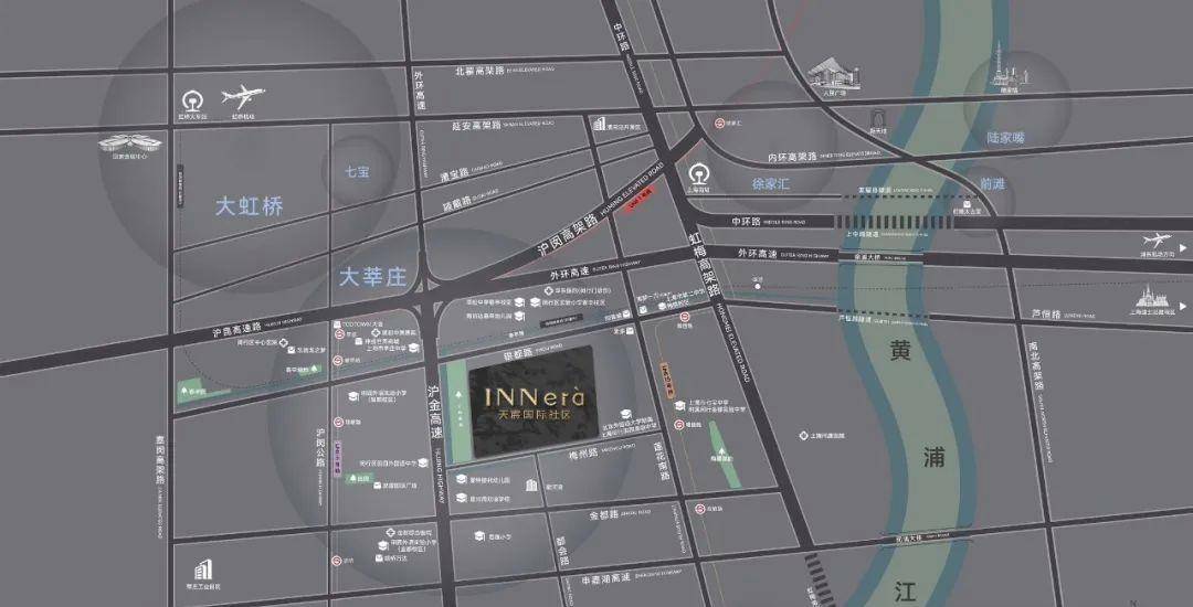 项目所在片区为上海闵行西南主城,辐射长三角,毗邻闵行人口最为密集的莘庄和梅陇板块,高净值人士数量较多,行政服务能力较强的老闵行别墅区,车行约20分钟直达虹桥枢纽,双地铁四高速,交通便捷。