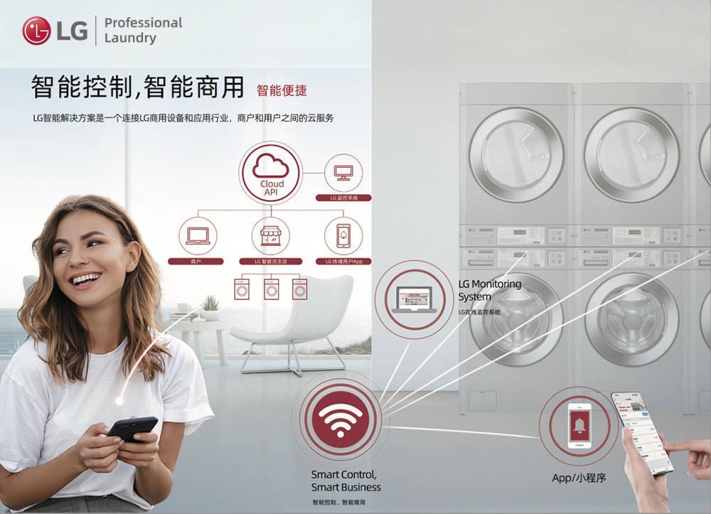 LG专业洗烘的智慧化设计,能够同时满足洗衣房管理和客户使用的双向需求。