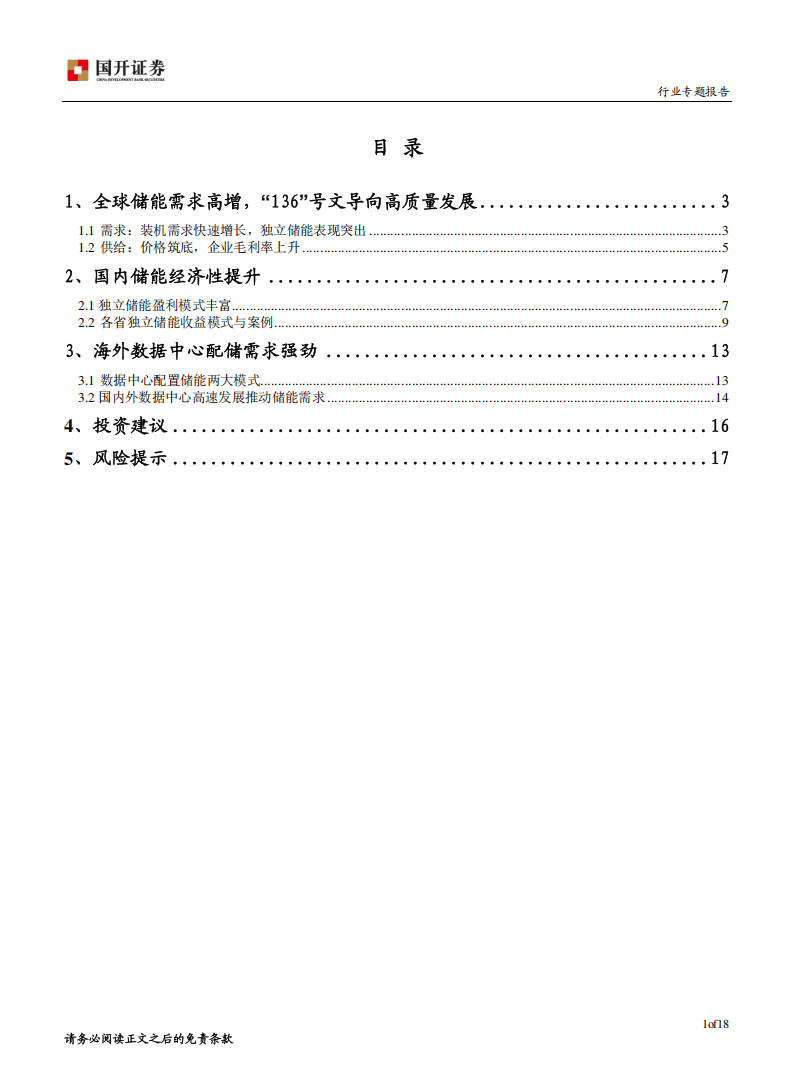 今天分享的是:储能行业专题报告:行业增长明确,关注独立储能和数据中心配储