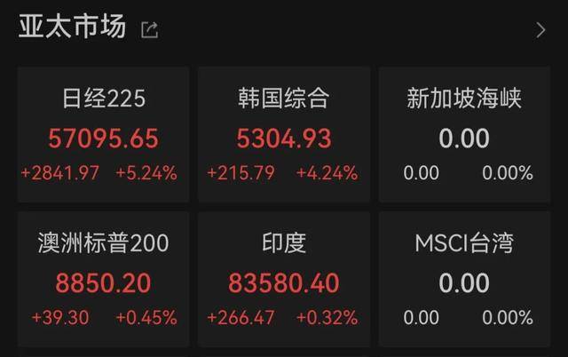 北京时间2月9日,日韩股市大幅上涨。截至发稿,日经225指数涨5%;韩国KOSPI指数涨超4%。在经历上周的巨震后,现货黄金盘初持续走高,重新站上5000美元/盎司;现货白银盘中突破80美元/盎司。