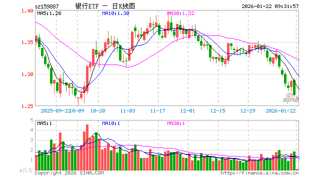 1月22日,银行ETF(159887)开盘跌0.47%,报1.261元。银行ETF(159887)重仓股方面,招商银行开盘涨0.08%,兴业银行涨0.31%,工商银行涨0.00%,农业银行跌0.86%,交通银行涨0.30%,江苏银行跌0.21%,浦发银行涨0.00%,平安银行涨0.00%,民生银行涨0.00%,上海银行涨0.00%。