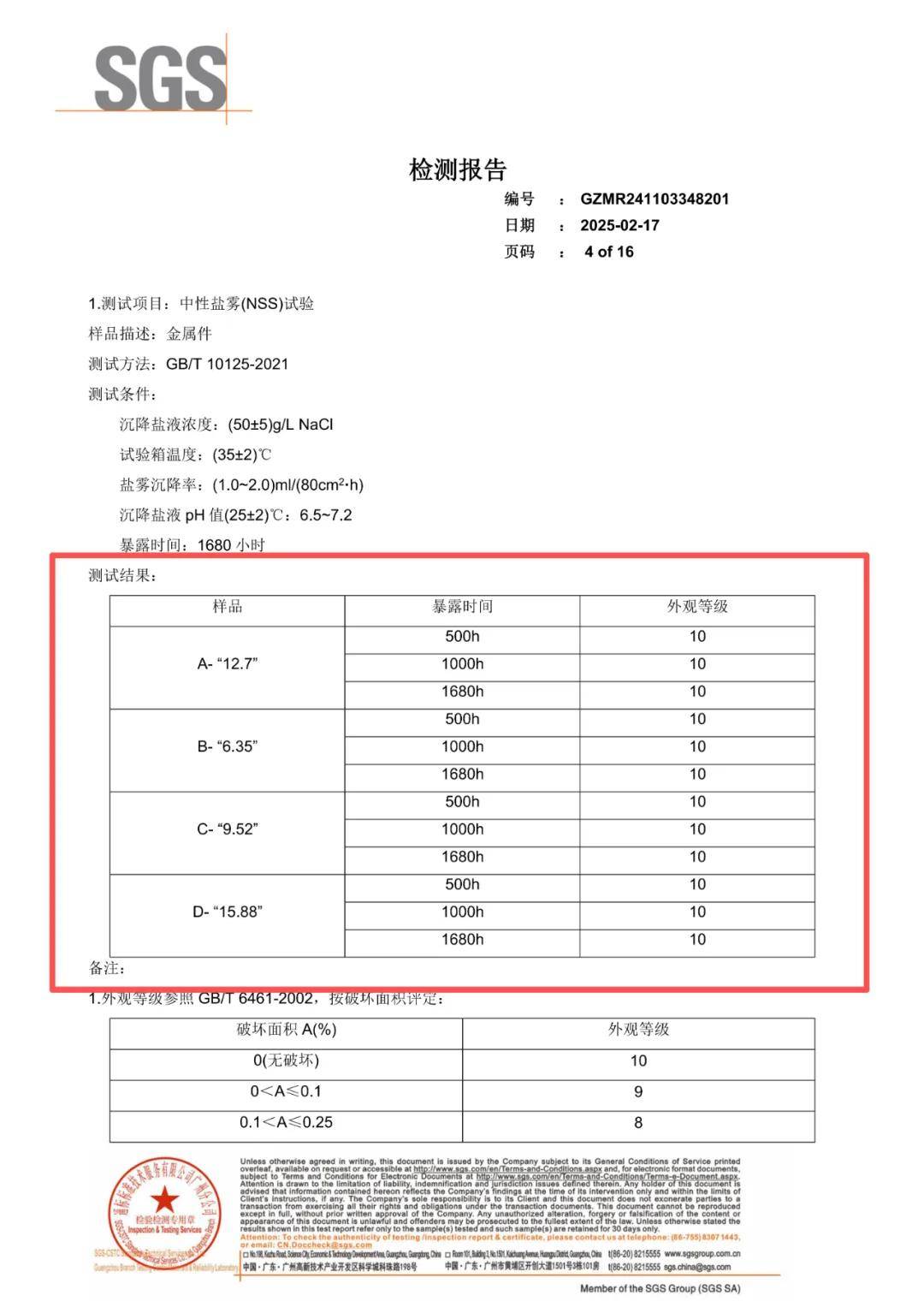 ▲中性盐雾测试报告