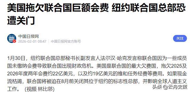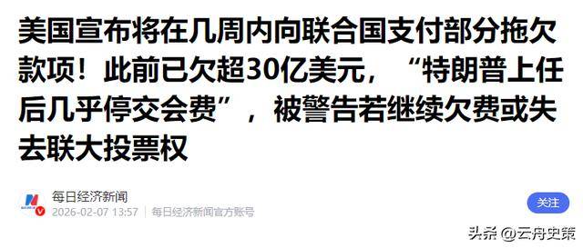 可偏偏,剧情在不到一周内发生了彻底反转,2月6日,美国驻联合国代表沃尔兹站出来,宣布一次性支付31亿美元。