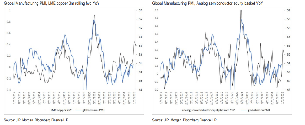 值得注意的是,报告通过回归分析指出,铜价飙升部分由“货币贬值资金流”推动,隐含的全球制造业PMI预期(约53)远高于实际读数(约50.5)。尽管铜价可能略微高估了周期性复苏的力度,但顺周期趋势的完整性意味着铜在回调时将吸引实质性的买盘兴趣。