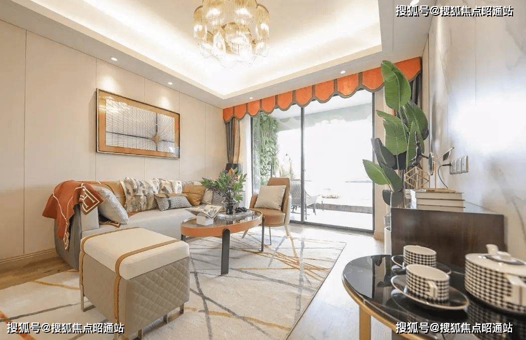 大客厅直连弧形观景阳台,俯瞰山湖美景,近景享受光合空间。