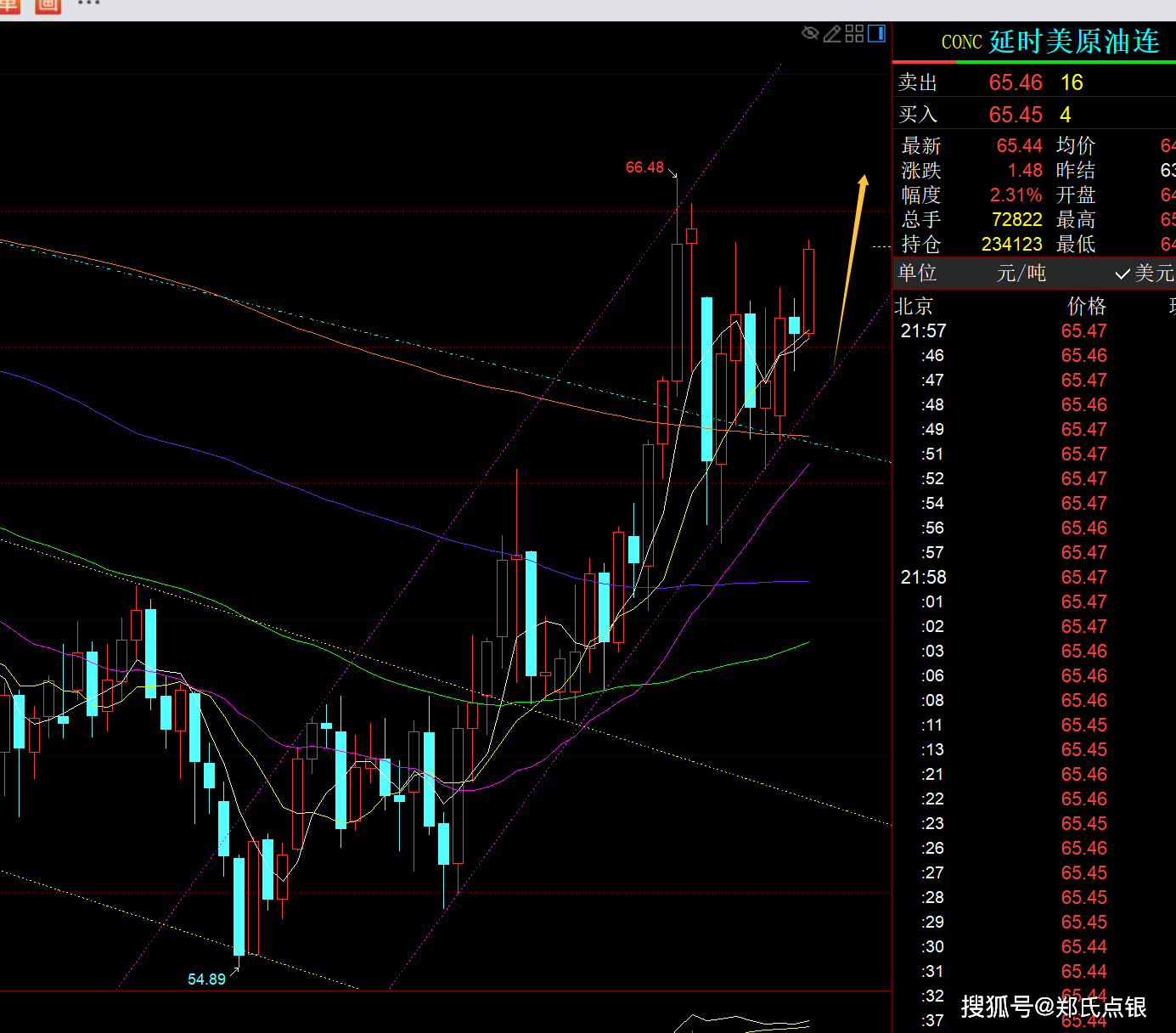 原油方面:日线上行通道依旧保持良好,所以继续以下轨支撑逢低看北就行,震荡式拉升,今日支撑上移63.3,此位置上保持阶梯式拉升状态,有相对低位的北上底仓可多拿会,看后期这批黑马是否起效;