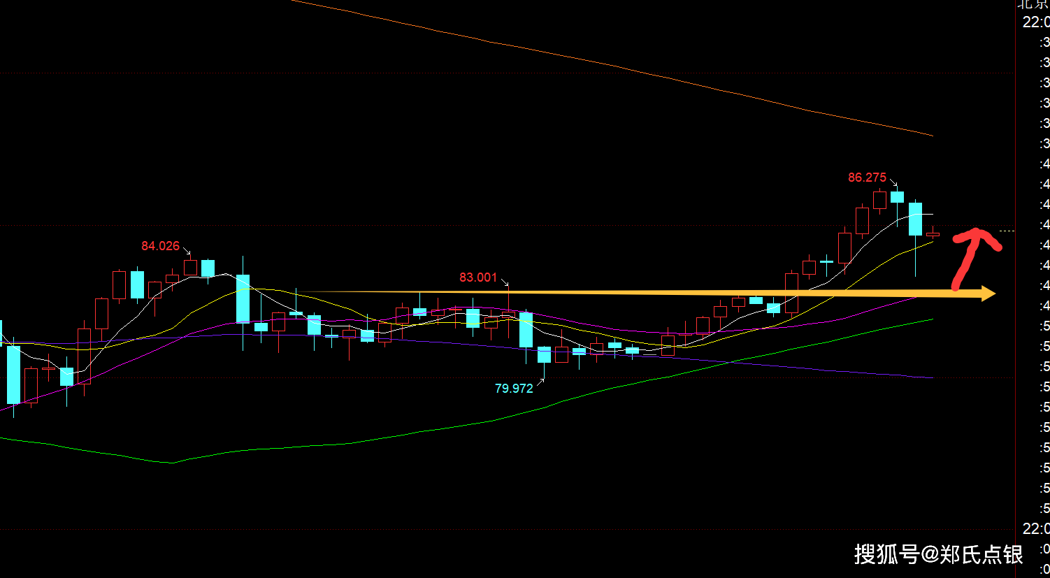 第二,白银方面:这两日一直维持高位震荡整理,昨晚研报维持80.5上北上,今日终于迎来一波拉升,抵达86;