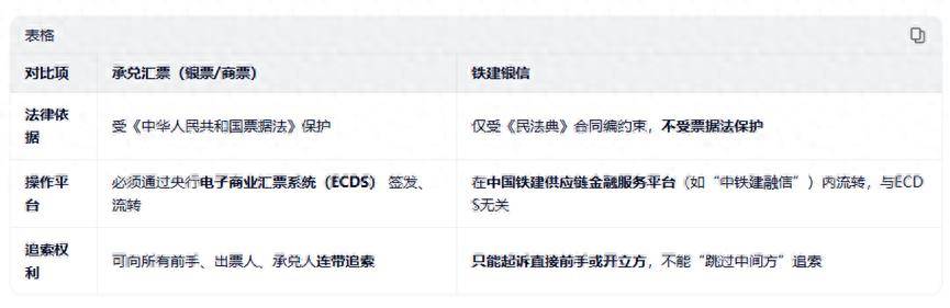 总结:铁建银信 ≠ 银票 ≠ 商票;它是基于合同的电子债权凭证,安全性完全依赖开立方的信用和履约能力,没有银行或票据法兜底!
