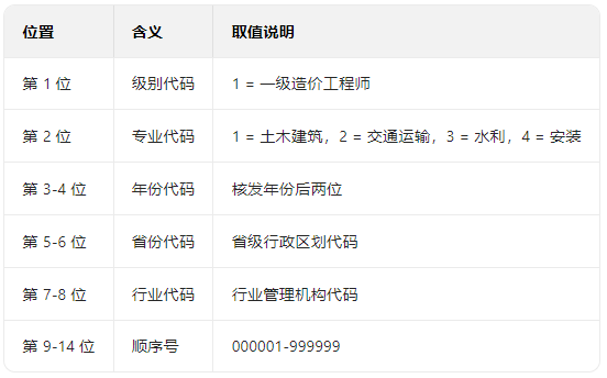 注册证书编码为“建[造]”+14位数字,规则如下: