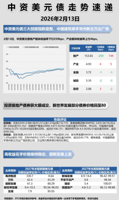 中资美元债(2月13日) | 板块收益率走势速递