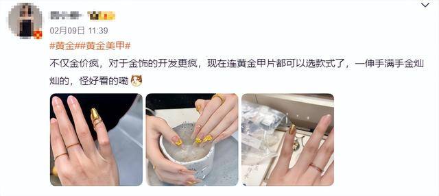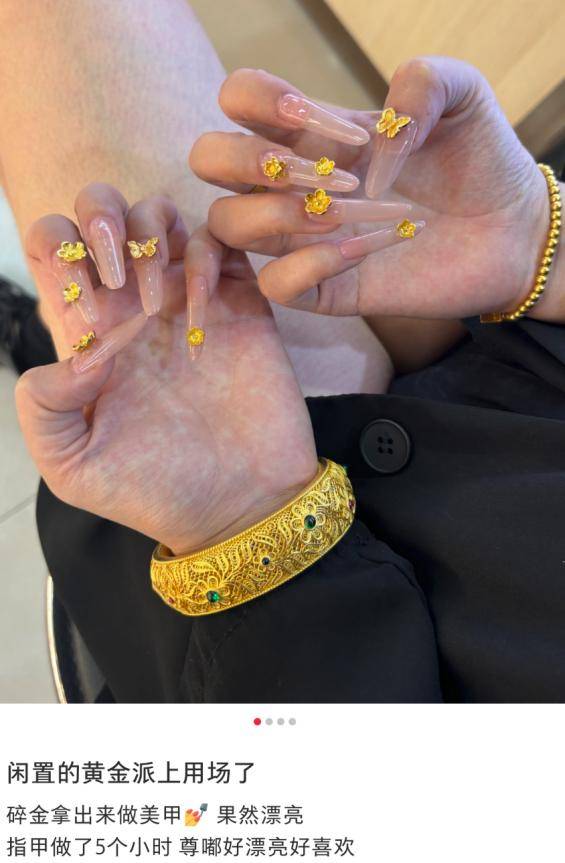 周大福等头部品牌的小件金饰,甚至老铺黄金的金条都成了美甲店的“高端原料”,有消费者表示,愿意花数千元、上万元打造“黄金甲”。