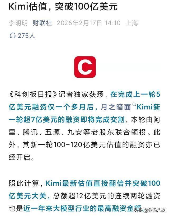《科创板日报》记者独家获悉,月之暗面Kimi新一轮超7亿美元融资即将完成交割,距离其上一轮5亿美元融资仅过去一个多月。本轮融资由阿里、腾讯、五源、九安等老股东联合领投,资本方集体加码,彰显对Kimi技术实力与商业化前景的高度认可。短短时间内密集完成大额融资,在国内AI大模型赛道实属罕见,也让市场对其后续发展充满期待。