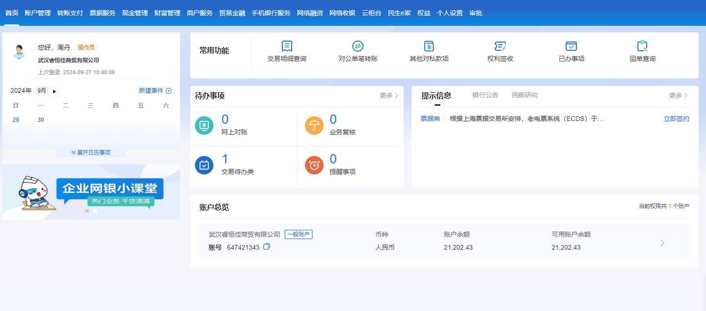 最后换复核U盾重新登录企业网银,点击“交易待办类”,按提示完成复核。这样只要背书后下家没有签收的新一代票据,就又可以重新回到自己的账户了。