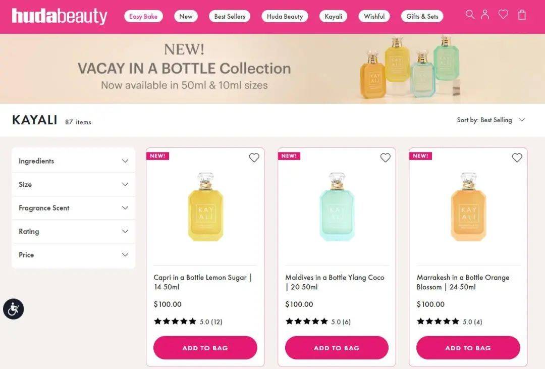 品牌覆盖全球1500+零售渠道(如丝芙兰、Ulta Beauty等),2020年销售额突破2.5亿美元(约合人民币17.97亿元),位列福布斯估值头部美妆品牌。2018年,香水品牌Kayali推出,2023年销售额同比增80%,成为增长最快业务线。