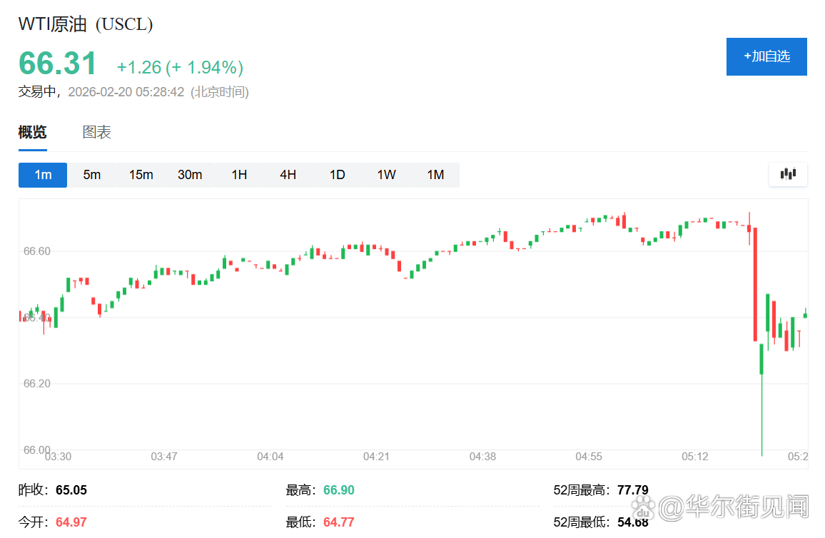 WTI原油期货短线下挫超过0.60美元,退守66.00美元/桶下方,整体涨幅收窄至1.9%左右。
