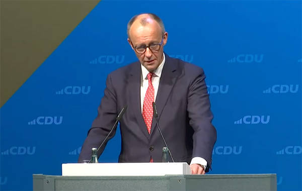 当地时间2月18日,默茨在基督教民主联盟举办的圣灰星期三集会活动上发表讲话。视频截图