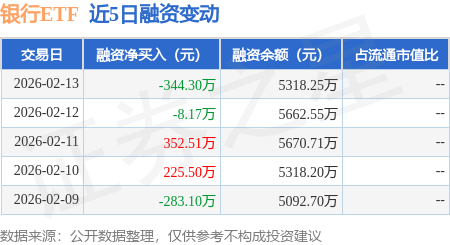 证券之星消息,2月13日,银行ETF(159887)融资买入1291.52万元,融资偿还1635.82万元,融资净卖出344.3万元,融资余额5318.25万元。