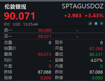 【大河财立方消息】2月25日,现货白银站上90美元/盎司,为2月5日以来首次,日内涨3.43%。现货黄金日内涨幅超1.00%,现报5196.98美元/盎司。