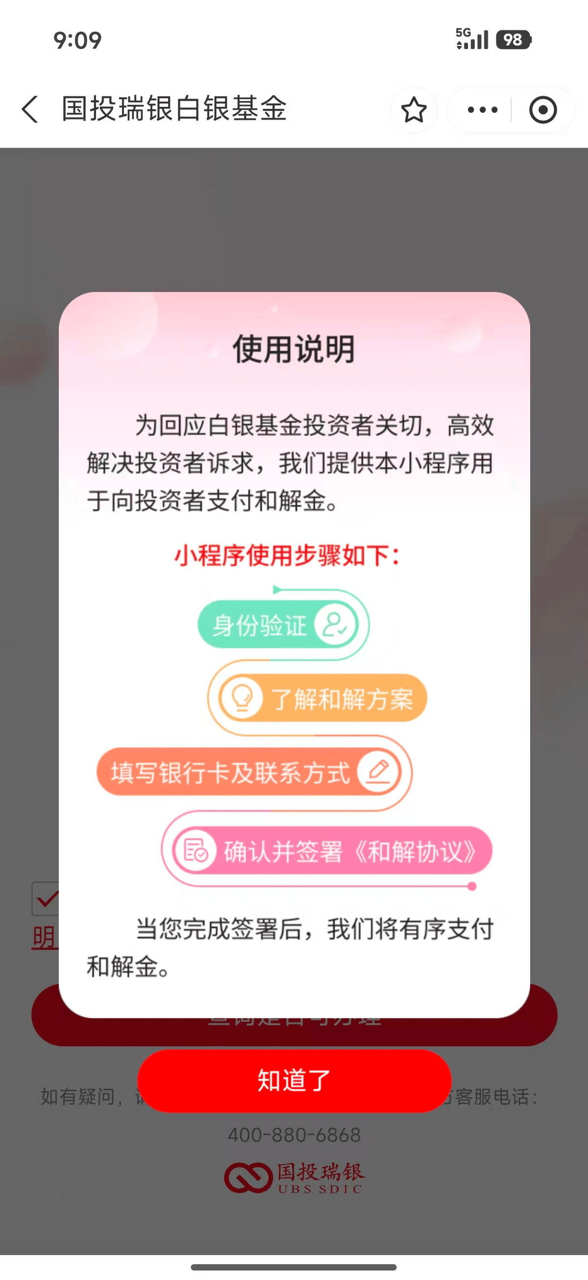 2月26日,“国投瑞银白银基金”小程序在支付宝上线,符合条件的投资者进入小程序完成身份核验后,就能在线办理和解相关事宜。