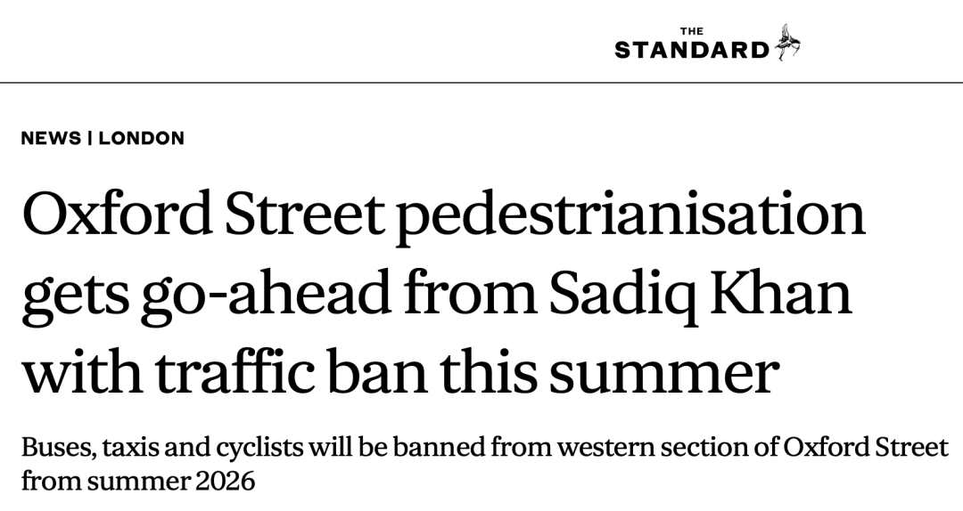 从2026年夏季开始,牛津街西段将禁止一切机动车和自行车通行。萨迪克·汗说,禁车对游客来说更安全、更便利,同时还将有助于伦敦成为“全球领先的购物、休闲和户外活动场所”,与巴黎和纽约等城市竞争。