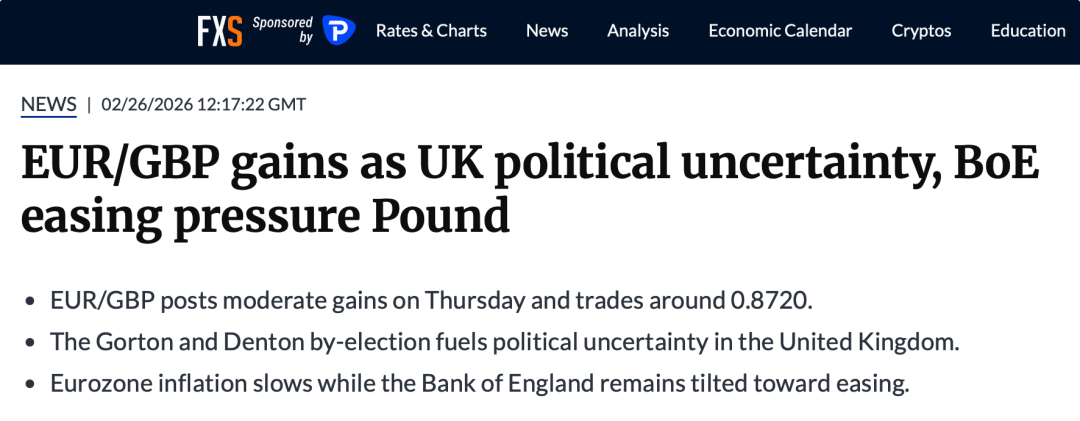 英镑大跌,英国执政工党最新补选遭遇惨败,政治不确定性上升