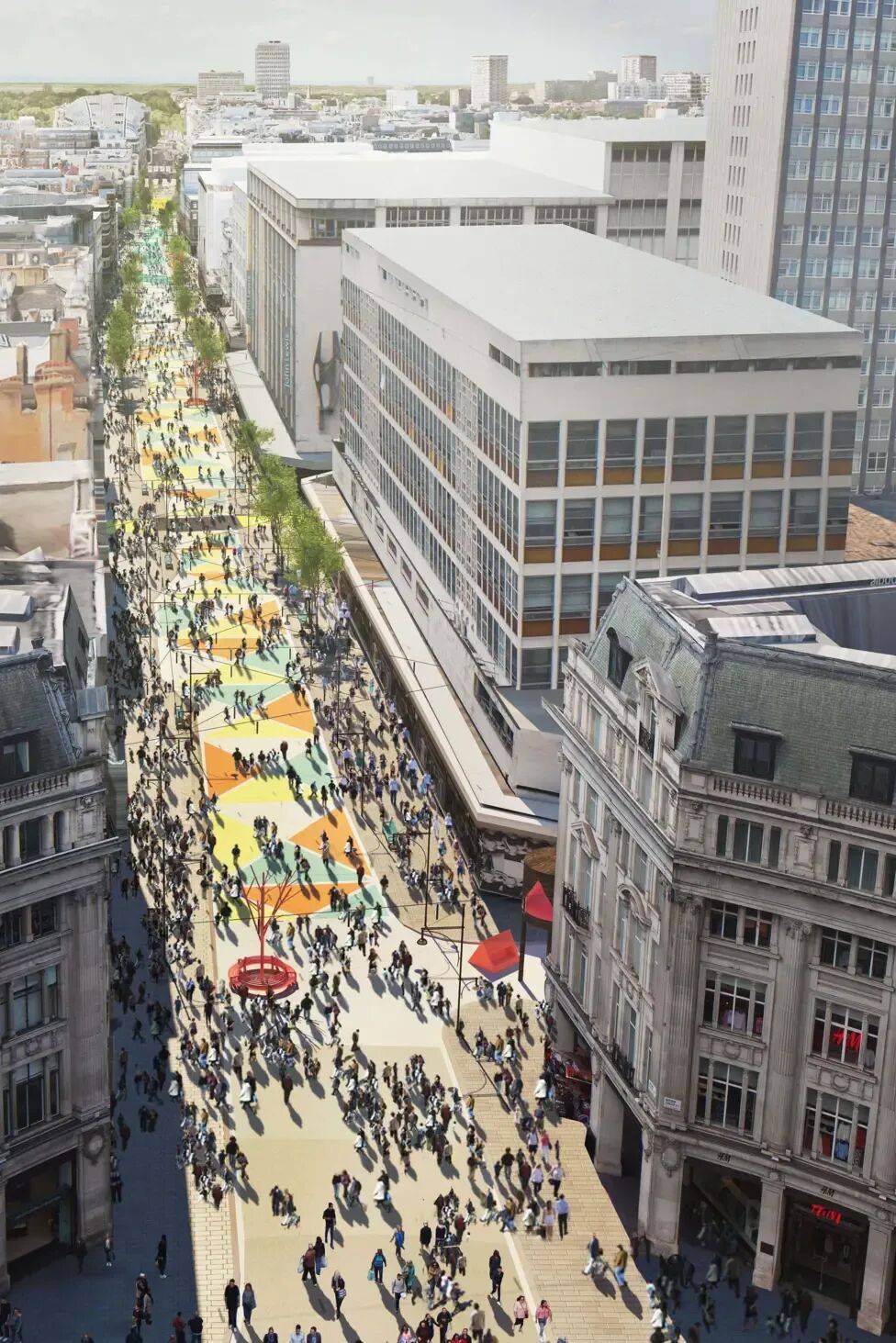新的改造计划将意味着:在Orchard Street和Great Portland Street之间,即牛津街Selfridges百货和Ikea之间的路段,禁止所有机动车、自行车和踏板车通行(自行车被允许在清晨和深夜时段骑行)。服务和配送车辆可以在午夜到早上 7点之间进入该区域。
