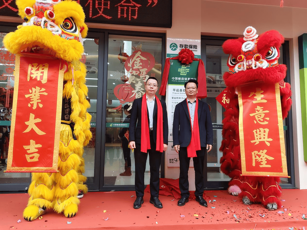 活动首先由平远县石正镇镇长郑跃和邮储银行平远县支行行长叶辉为醒狮点睛,拉开庆典仪式序幕。随后共同为石正支行新网点揭牌,标志着网点以全新形象、全新服务、全新起点扬帆起航。