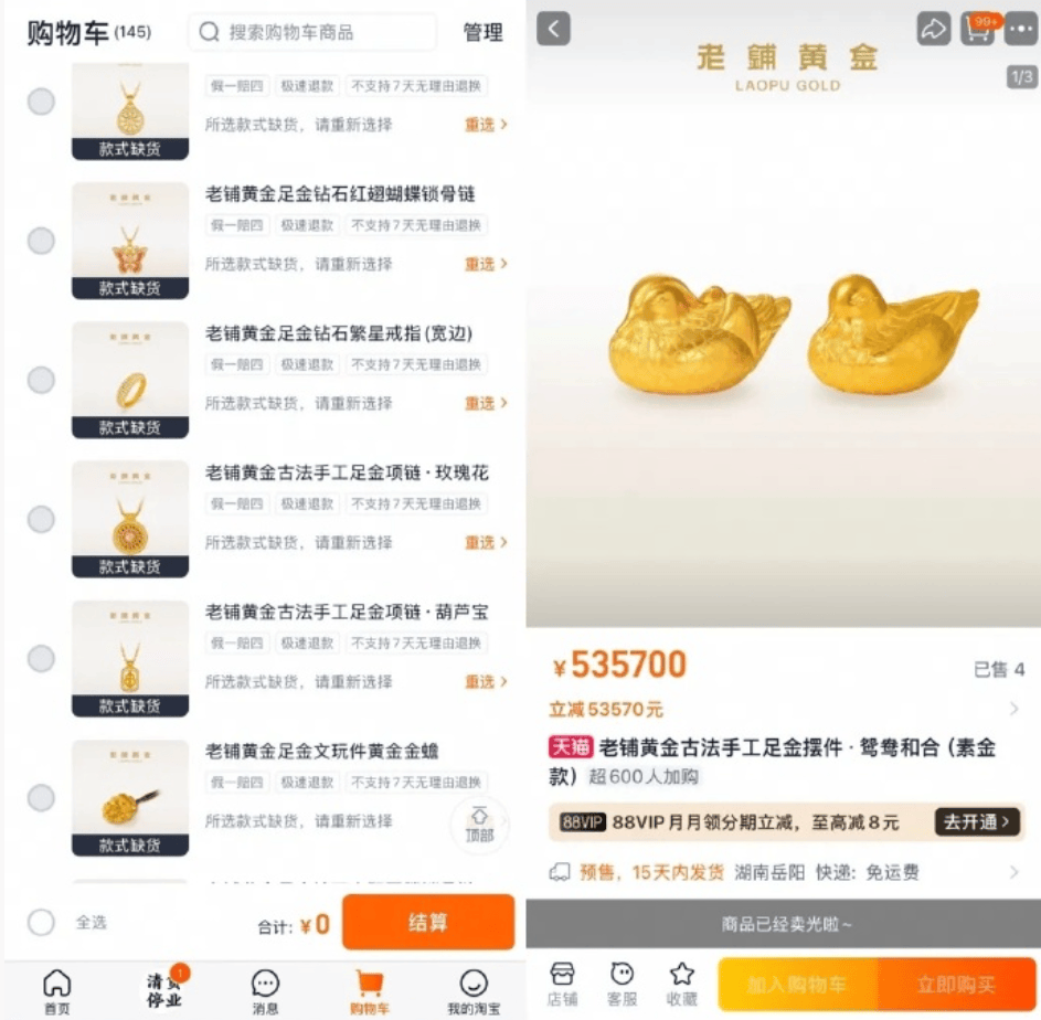 今日国内黄金饰品价格对比显示