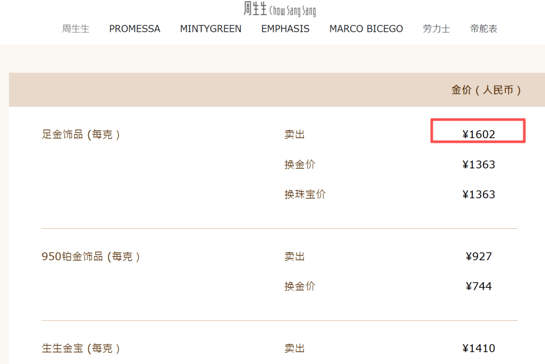 周生生报价1602元/克