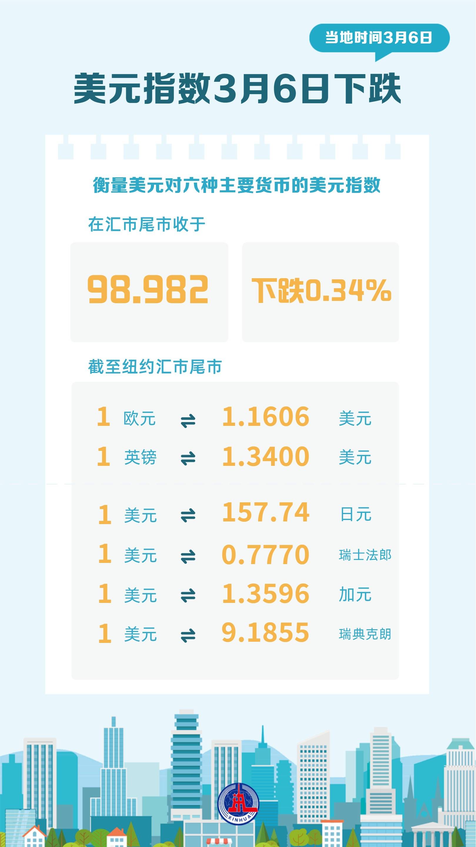(图表)美元指数3月6日下跌
