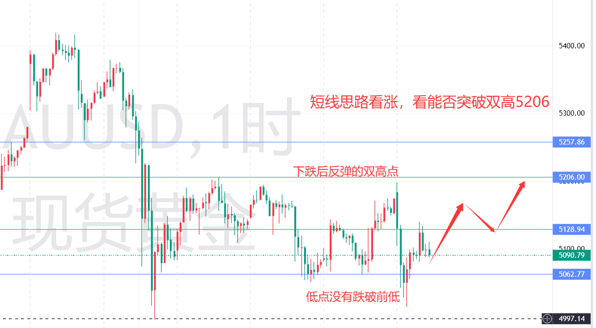 上行目标清晰明确,逐步推进:首先关注前期关键压力位5128,今日下午虽出现虚破,但这属于多头蓄力前的正常回撤,晚间有望完成回撤蓄力后,有效破位并站稳5128,为进一步上行打开空间;站稳5128后,下一个核心目标便是前期两次反弹高点5206,此处将是多头进一步发力的关键节点;若能顺利突破5206,后续可继续看向上周下跌行情的618回撤位5257,该位置的突破将进一步确认多头趋势的强势,后续将在本周分析中持续跟踪其突破节奏。