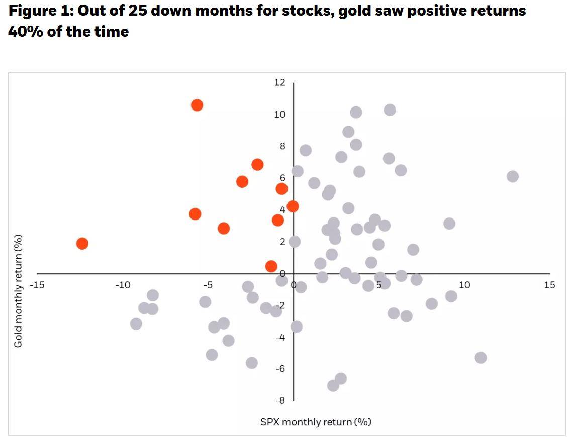她说:“自2020年以来,在标普500指数单月跌幅超过5%的月份中,黄金平均回报率达到2%,而美国综合债券指数的表现则几乎持平。这种不对称性使黄金在市场回撤情景中显得格外有价值。”