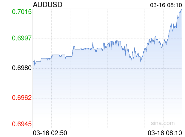 新浪外汇消息2026年03月16日,截至08时10分,外汇市场上澳元兑美元汇率突破1澳元兑换0.7016美元。涨幅为0.5158%
