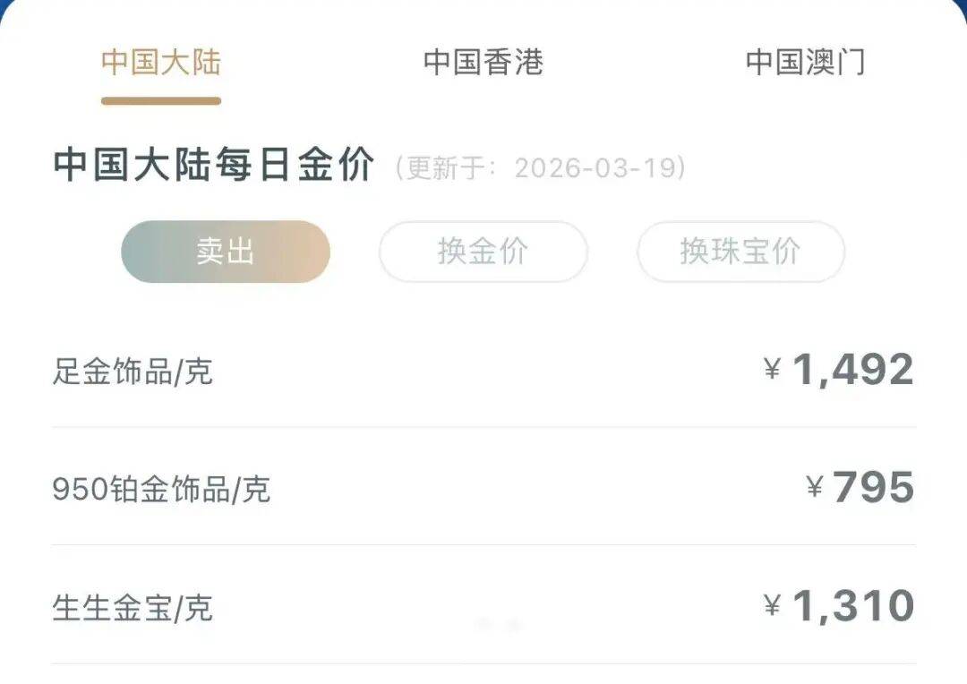 记者从融通金公众号查询到,3月12日以来,国内黄金价格持续走低:销售价从1146元/克、1139元/克、1121元/克、1117元/克、1116元/克,一路降至最新的1110.47元/克,几乎每天都在刷新低价。