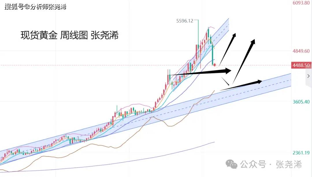 黄金市场上周:国际黄金大幅回落收跌,受到美国通胀数据的升温,美联储主席提及加息可能性,以及市场担忧冲突可能持续数个月,交易员就此预计10月底前美联储加息的概率为50%,且有可能在12月加息等利空消息导致大幅抛售。令金价当周下跌超500美金,并再度回踩临近30周均线支撑,空头力量加大,暗示后市偏向横盘震荡调整或再度走低下探。下方关键支撑4300美元跌破则将进一步跌至3800美元附近,上方则关注5000美元关口,重回上方则可续写牛市传奇。