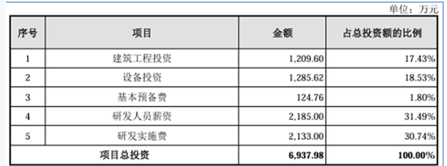 而就在6937.98万元投入的研发及产品展示中心建设项目中,居然包括了2185万元的研发人员薪资支出。为整个研发及产品展示中心建设项目中最大的支出费用,占比达到31.49%。