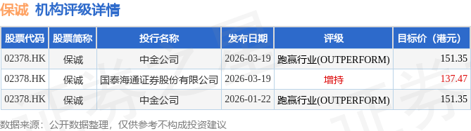 截至2026年3月24日收盘,保诚(02378.HK)报收于111.2港元,上涨2.96%,成交量10.06万股,成交额1112.28万港元。投行对该股的评级以跑赢行业(OUTPERFORM)为主,近90天内共有2家投行给出跑赢行业(OUTPERFORM)评级,近90天的目标均价为146.72港元。中金公司最新一份研报给予保诚跑赢行业(OUTPERFORM)评级,目标价151.35港元。