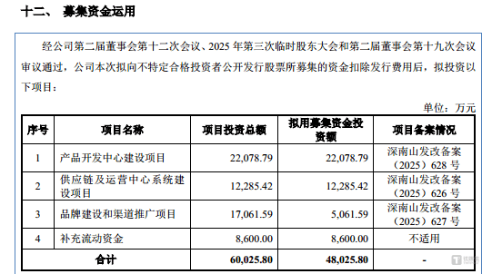 千岸科技此次IPO欲募集48025.8万元,分别产品开发中心建设项目、供应链及运营中心系统建设项目、品牌建设和渠道推广项目、补充流动资金,具体情况如下: