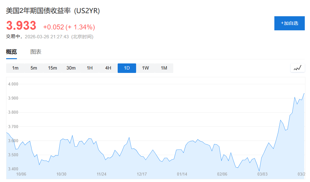 与经济学家的相对克制不同,市场交易员的反应更为激进。据彭博报道,随着油价上涨以及伊朗停战谈判相关消息相互矛盾,交易员持续加码美联储加息押注,美国国债收益率曲线呈现熊市平坦化走势。
